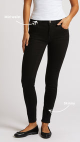 Jennie Mid-Waist Skinny är tidlösa jeans utan ficklock. De finns i en mängd olika färger för en avslappnad vardagsstil.