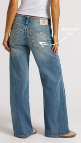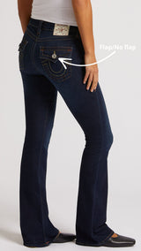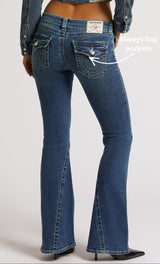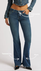 Joey Low Rise Flare Jeans har vår signaturficka och vridna benslut. Finns i flera tvättar.